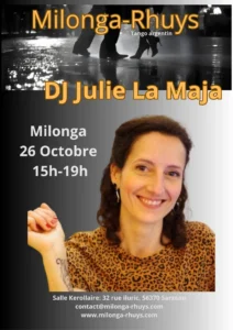 En Octobre 2025, c’est la DJ Julie La Maja qui musicalisera la milonga.